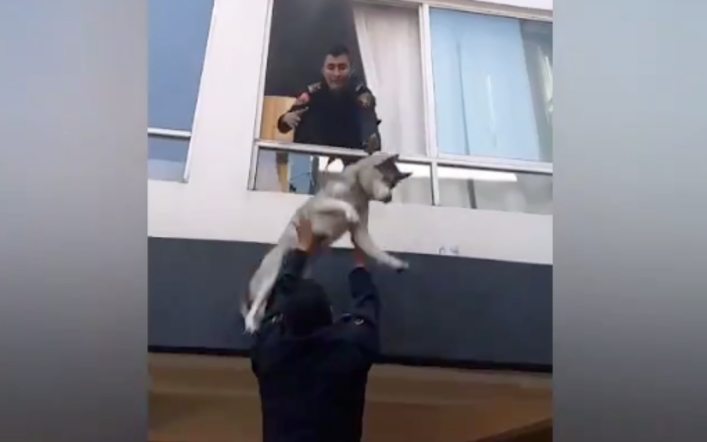 En un video publicado en redes sociales, se observa a los policías bancarios de la SSC-CDMX salvar al animal de compañía que se encontraba al interior del departamento que se incendiaba.