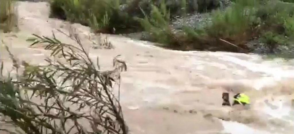 Tras un reporte de que una camioneta pickup blanca era arrastrada, debido a las intensas lluvias que dejó el paso de la tormenta tropical ‘Fernand’, elementos del Grupo Jaguares de Protección Civil Santa Catarina acudieron al rescate de la persona y de su animal de compañía.