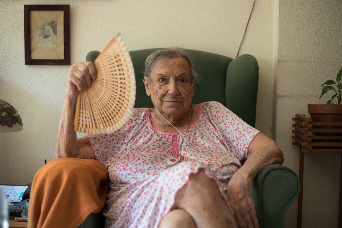 Cuando el pequeño grupo empezaba a disolverse, apareció por allí un cartero que se acercó a una mujer mayor que veía la escena a cierta distancia. Ella estaba sentada en una silla de ruedas, con un vestido de flores y unas gafas de sol. “Carmen, tengo esto para usted”, le dijo, presentándole un burofax. Ella lo miró confundida. “¿Carmen Franquelo? Esto no es para mí”, le respondió.