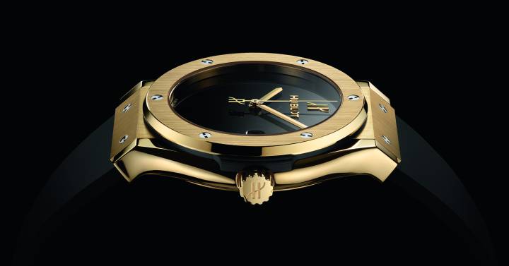 Su esfera negra lacada y pulida transmite minimalismo y pureza, mientras que sus agujas facetadas y los logotipos H y Hublot en aplique aportan un sello característico de elegancia. La caja de 45 mm de oro 3N, titanio o cerámica le otorgan una personalidad rotunda y sólida, remachada con los reconocibles tornillos que se han convertido en una de las insignias de la marca para crear un conjunto inmutable y robusto. Como en su predecesor, la correa de caucho permite que su ajuste sea sencillo y cómodo, gracias a su triple cierre desplegable, haciendo que sea un reloj versátil que nos puede acompañar en cualquier contexto y situación.