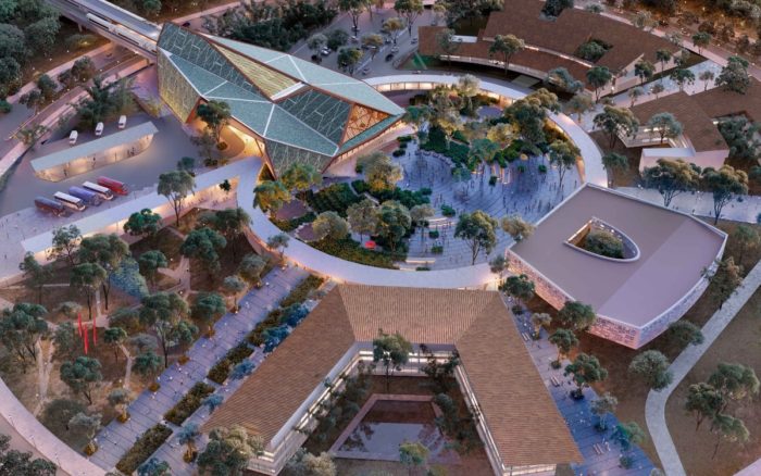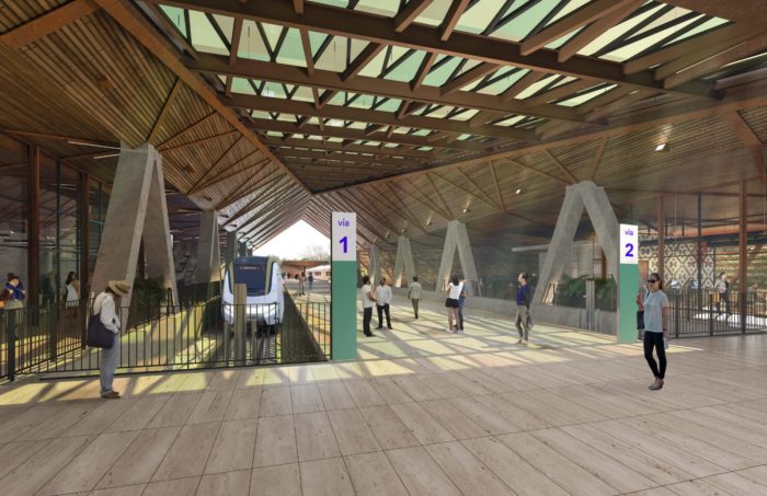 El Fondo Nacional de Fomento al Turismo (Fonatur) presentó los diseños conceptuales de la estación terminal del Tren Maya en la ciudad de Palenque, Chiapas, la cual estará ubicada en la zona del antiguo aeropuerto.