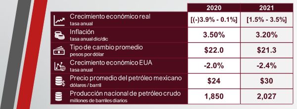 También considera que el próximo año se mantendrá un precio promedio del barril de petróleo mexicano en 30 dólares, y que se logrará una producción diaria de 2 mil 027 millones de barriles.
