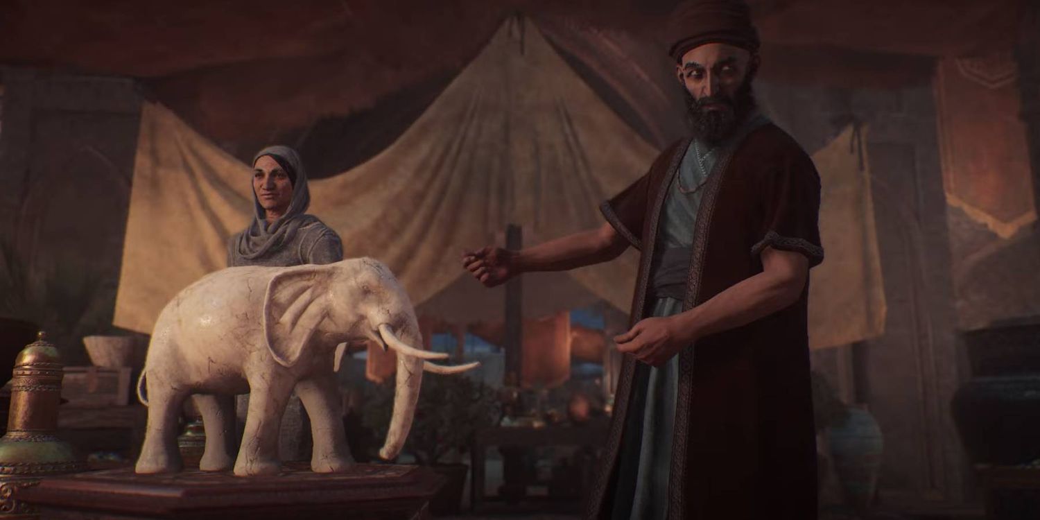 “/> Descubrir la identidad del Tesorero a través de Qabiha te dará una cara que buscar entre la multitud del Gran subastael gran evento del que te enteraste antes por el comerciante que vendía productos del Este. Viaja de regreso por el primer piso del Bazar. a encuentre un comerciante que pueda llevarlo a la subasta. Esta cifra será marcado en naranja por tu Eagle Sight mientras exploras la multitud de comerciantes en Espejismo del Credo del Asesino.