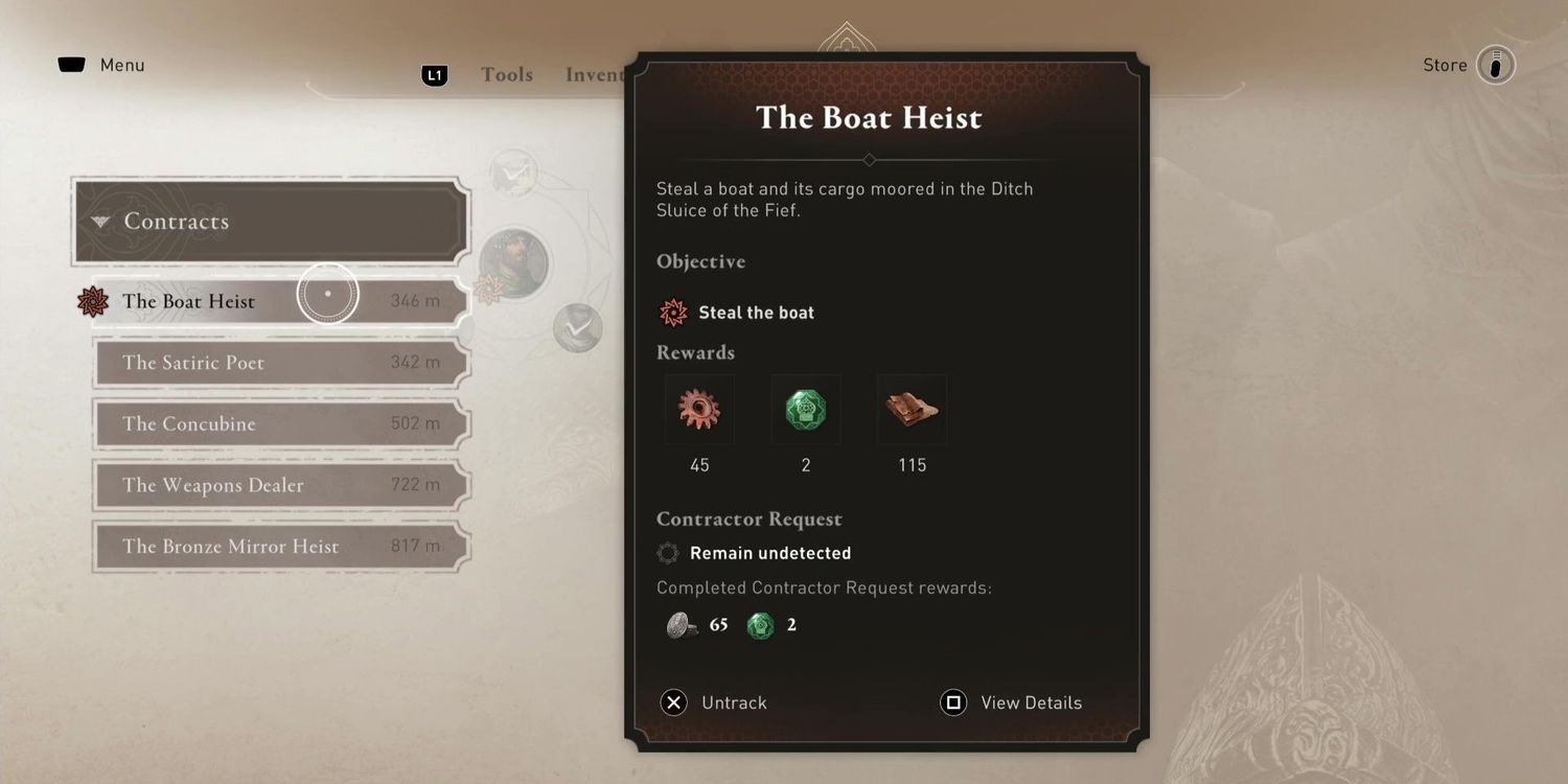 Basim puede aceptar todos los contratos del tablero si así lo desea, y esto puede permitirle tener más opciones al explorar el mundo. También te permitirá ver en qué parte del mapa se encuentra el Contrato y el nivel del área en la que se encuentra. Los jugadores pueden ver más detalles en el menú.
