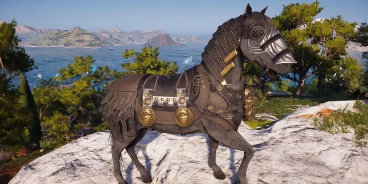 El toro también tiene un dibujo detallado de Dionisio estampado, que es el tipo de pequeño detalle divertido que hace Odisea uno de los mejores credo del asesino juegos. Si bien el toro en realidad no proporciona ningún beneficio material en el juego, sigue siendo divertido tener la variedad. Además, no hay suficientes tiendas de porcelana griega para que el toro sea realmente un problema.