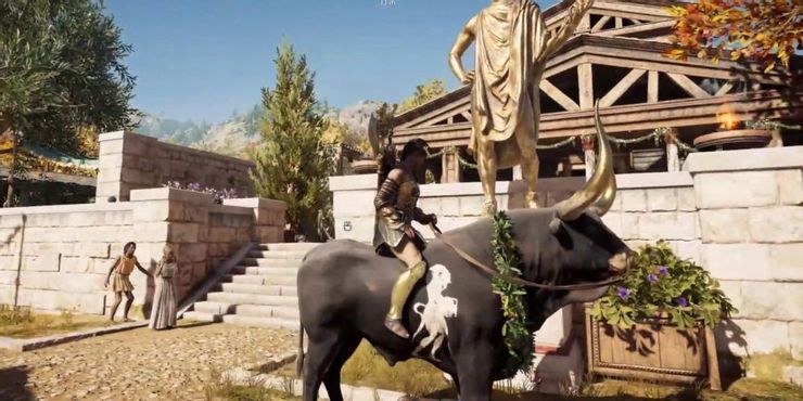 A veces se vuelve agotador andar por todas partes en las mismas viejas variaciones del mismo viejo caballo. Es por eso Odisea eligió presentar una montura que no necesariamente tenía que ser un caballo. En el paquete DLC de Dionysos, los jugadores pueden optar por renunciar por completo a Phobos y, en su lugar, pasar sus días cargando a través de Grecia en un toro.