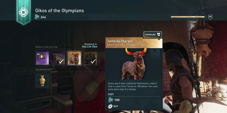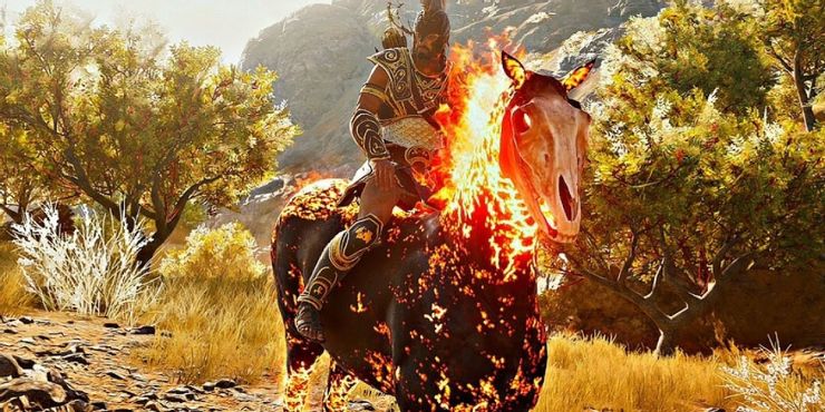 Otra criatura que sale directamente del mito, el Tartaros Charger es un aspecto que se ve increíble en la carrera. Con la lava cayendo en cascada a través de sus entrañas y sus cuernos al rojo vivo, es increíblemente divertido cabalgar por los paisajes a lomos de este toro. Los fanáticos pueden obtenerlo simplemente comprando el paquete DLC de Herakles, y muchos piensan que vale la pena simplemente montar este toro.