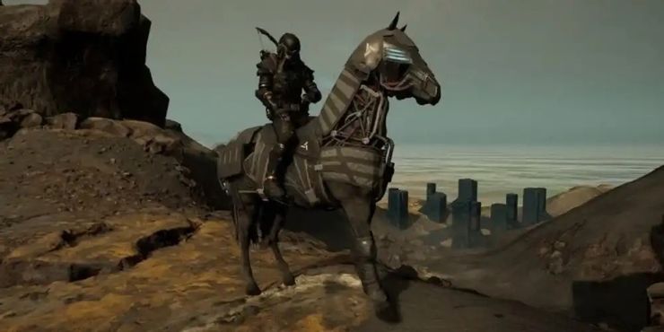 Con cableado expuesto, ojos brillantes y placas de metal en todo el lomo del caballo, Equine Enforcer parece haber salido de una distopía futurista directamente al reino de la Antigua Grecia. Es especialmente divertido atravesar antiguas ciudades inundadas a lomos de una criatura que podría haber salido directamente del año 2099.