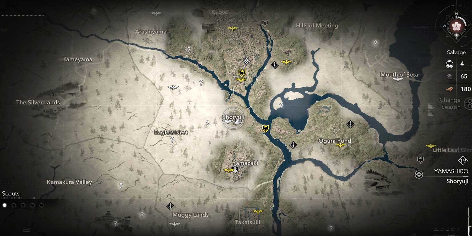 Es probable que pueda detectarlo desde los puntos de vista Yamazaki o del sur de Kyoto, luego marcarlo en su mapa y dirigirse para desbloquear el punto de referencia y comenzar su búsqueda. Asegúrese de visitar el punto de vista En la parte superior de la torre principal para revelar el castillo de Shoryuji como un destino de viaje rápido.