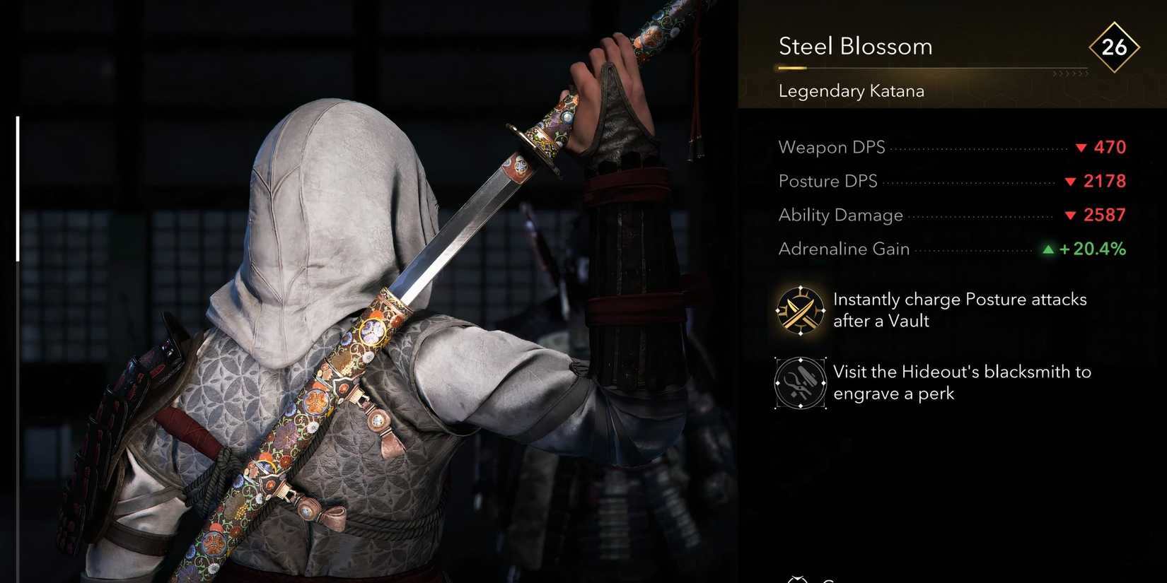 Si te gusta usar más el Tanto y Kusarigama, tampoco estás perdido para legendarios poderosos. La lágrima del artista Tanto es muy fuerte en particularya que hace más daño con éxitos consecutivos, que es lo que quieres hacer con un tanto de todos modos. Del mismo modo, la tormenta de plumas Kusarigama cargará ataques de postura al golpear múltiples enemigos, que es la fuerza del arma.