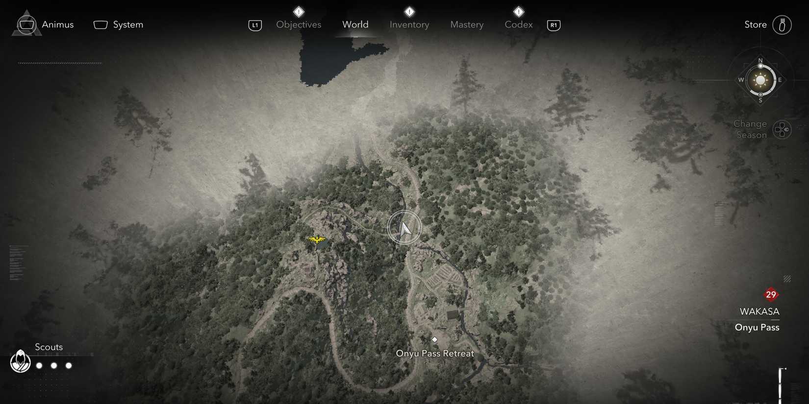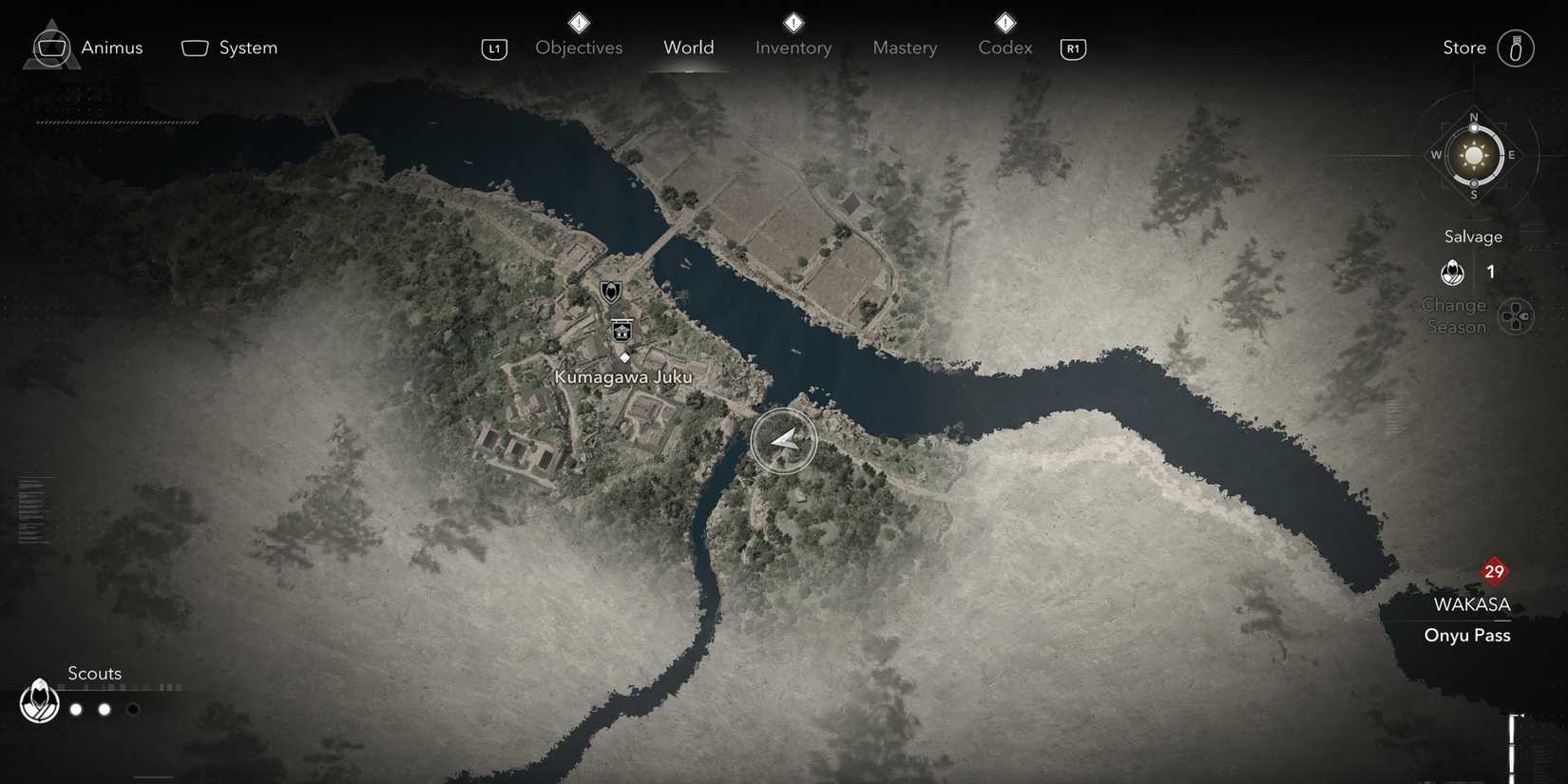 Puede Sigue el camino hasta que pases Kumagawa Jukeque tiene un kakurega si tienes el mon en Assassin’s Creed Shadows por eso. Ve sobre el puente y podrás ver la estatua de Jizo. Después, Date la vuelta y regresa al últimoo use esa torre de protección para viajar rápido hacia atrás. Se dirigirá a la sección norte de Wakasa después de esto.