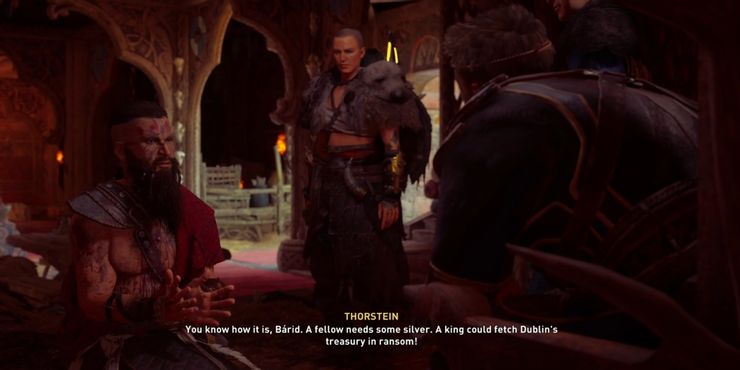Al derrotar a Thorstein en su escondite, el jugador deberá llevar su cuerpo atado al King’s Hall en el centro de Dublín y presentarlo a Barid y a su hijo Sichfrith para que lo juzguen. Barid, siendo el primo de Eivor, le pide consejo al jugador, lo que resulta en tres posibles opciones; una ejecución digna, una muerte brutal o una demostración de crueldad. Cada elección va seguida de una breve explicación de Eivor, pero en realidad, no hay ninguna elección real que hacer. Independientemente de la acción que elija el jugador, Barid finalmente despojará a Thorstein de toda su riqueza y lo desterrará de la región. Mientras Sichfrith y Eivor expresan sus preocupaciones, Barid las anula en todos los escenarios, afirmando que desea ser visto como un gobernante cristiano con valores cristianos y expulsa a Thorstein sin violencia.
