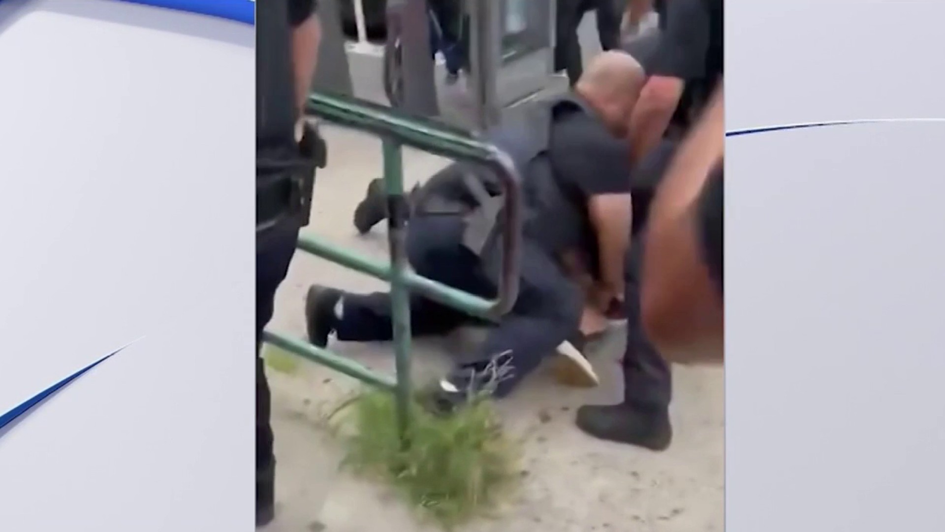 Mientras los oficiales intentaban hacer un arresto, se podían ver botellas golpeando a los oficiales o volando cerca de ellos.