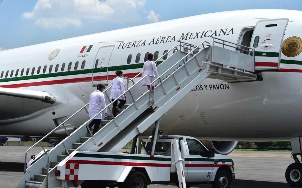 En un video difundido por el Gobierno Federal se aprecia como tres personas con batas blancas suben a la aeronave momentos después de su aterrizaje para revisar el estado de salud de la tripulación de la Fuerza Aérea Mexicana.