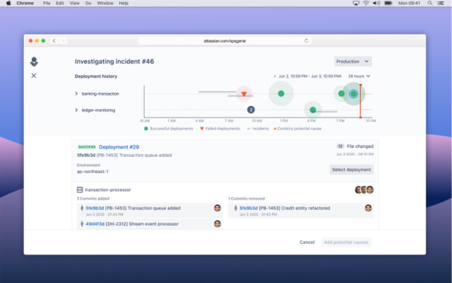 Por último, hay una nueva integración de Opsgenie y Bitbucket Cloud que centraliza las alertas y promete filtrar el ruido, así como un buen panel de investigación de incidentes para ayudar a los equipos a echar un vistazo a la última implementación que ocurrió antes de que ocurriera el incidente.
