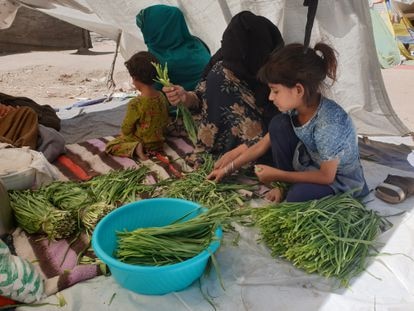 Incluso si los talibanes aceptan, como dicen, que las mujeres trabajen en la sanidad y la educación, mujeres sin formar como Parwana tendrán muy difícil encontrar una salida. En el parque, rodeada de sus vecinas, se siente más segura. De momento, limpia unas verduras que luego cocinará y sus hijos intentarán vender en el mercado para sobrevivir.