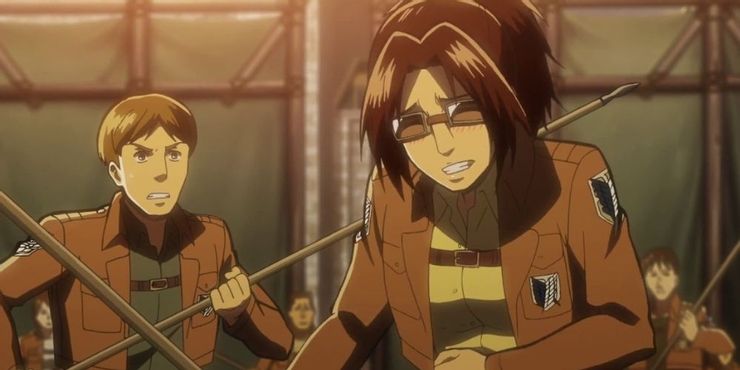 No hay nada que le guste más a Hange Zoë que hablar de titanes. Su fascinación por la investigación de Titán roza lo obsesivo y es uno de los mejores chistes del programa. Hange babea ante la perspectiva de examinar a Eren mientras él practica su transformación de Titán y se marea cada vez que ella experimenta con él.