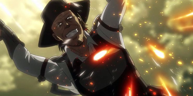 Kenny, después de no haber podido llegar a Levi en su encuentro inicial, trae a su tripulación para proteger al Rey Reiss y luchar contra los Scouts.