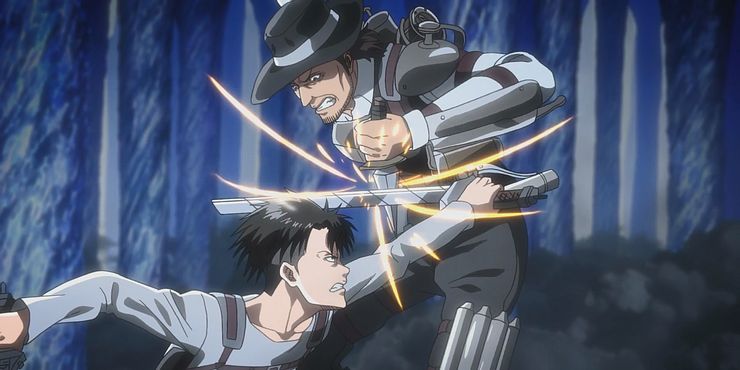 Quizás en la escena favorita de los fanáticos con equipo ODM, Levi se enfrenta a Kenny en un momento acalorado entre los dos personajes. Kenny se presenta como un posible antagonista contra los Scouts y su misión de proteger a Eren.