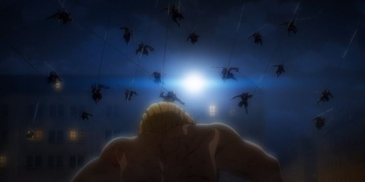 Cuando el Capitán Levi y el resto de los Scouts vuelan por los cielos, los Marleyans reaccionan conmocionados y asustados, ya que los Scouts realmente se ven como los “Demonios de Paradis” iluminados por la luz de la luna. Muchos fanáticos disfrutan de la escena y su entusiasmo ya que sus amados Scouts han regresado y están listos para atacar a sus opresores en una excelente demostración de habilidad.