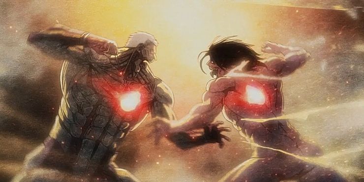 Los fanáticos anticipan regularmente enfrentamientos entre Eren y Reiner como sus respectivos titanes después de la dramática revelación de que Reiner era un guerrero enviado para destruir Paradis durante la segunda temporada. Vuelven a luchar durante la segunda parte de la cuarta temporada, esta vez con ejércitos a su lado.