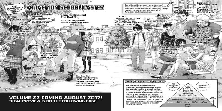 Un huevo de Pascua notable en el episodio es una referencia a Ataque a las castas escolares, una parodia de la escuela secundaria de la serie que aparece en todos los volúmenes desde el volumen 21 en adelante. El capítulo 120 correspondiente también tenía una referencia a eso, pero el anime hace mucho más evidente que se muestran versiones alternativas de Mikasa y Armin. Una teoría popular sobre Ataque en Titan postula que los universos alternativos y las líneas de tiempo están vigentes en diversos grados, y la parodia de la escuela secundaria que se muestra podría dar crédito a esa idea.