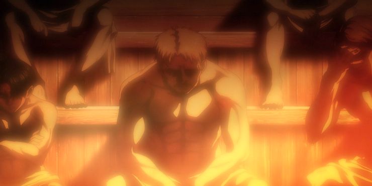 Probablemente el huevo de Pascua más extraño que se muestra es un destello de Reiner en una sauna, haciendo referencia a la portada de una revista que presentaba a todos los personajes masculinos en una casa de baños. muchos de Ataque en TitanLas portadas de las revistas son imágenes chistosas que no se relacionan con nada, y esta no es diferente. En el mejor de los casos, la portada hace referencia a Hajime Isayama diciendo que le gustaría abrir una sauna algún día, y es probablemente el huevo de Pascua que tiene menos implicaciones para el programa en el futuro, su inclusión es poco más que una referencia inteligente.