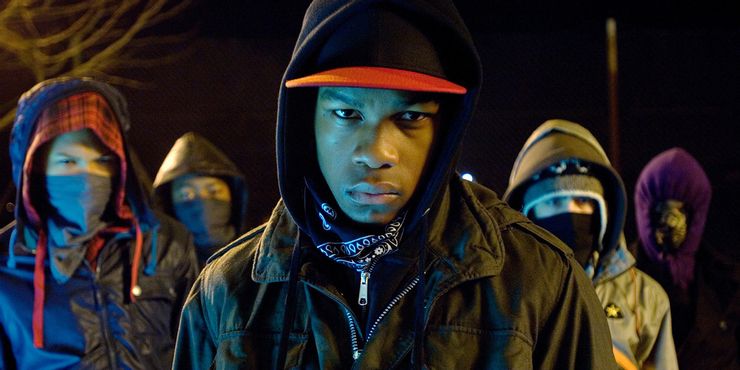 Lanzado en 2011, Ataca el bloque siguió a una pandilla callejera del sur de Londres dirigida por un adolescente llamado Moses (Boyega). Mientras asaltaba a una enfermera local, Samantha (Whittaker), un meteorito cayó del cielo. Moses y sus amigos pronto descubrieron que esos objetos que caían eran invasores alienígenas, lo que los obligó a unirse para defender su vecindario de un ataque. Durante la aventura, la pandilla se asoció con otros del rascacielos residencial, como Samantha y Ron (Frost), el traficante de hierba de la pandilla. Además de los extraterrestres, Moses y sus amigos se encontraron en desacuerdo con el jefe amenazante de Ron, Hi-Hatz (Jumayn Hunter). A pesar de ser acusado injustamente de la muerte y destrucción en el área, Moisés emergió como un héroe, demostrando que era capaz de hacer cosas más grandes en la vida.