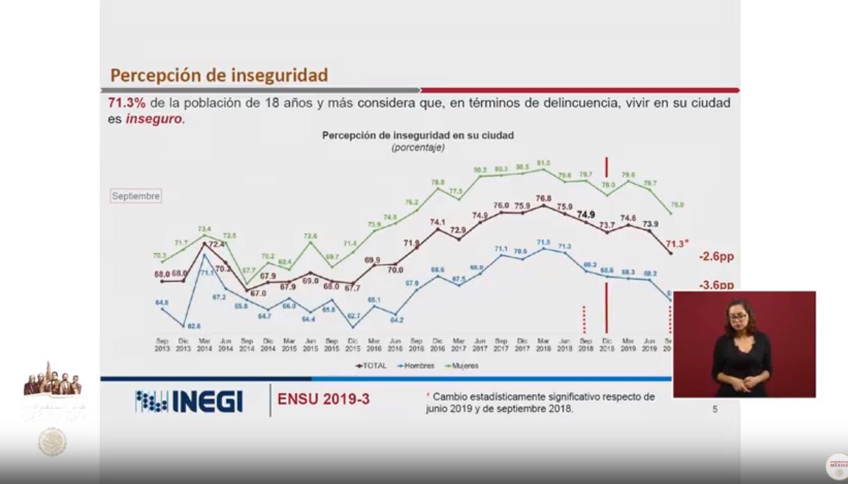 Para ejemplificar esto, el mandatario federal sostuvo que la más reciente encuesta del Instituto Nacional de Estadística y Geografía (Inegi) asevera que la gente tiene más confianza en su estrategia de seguridad.
