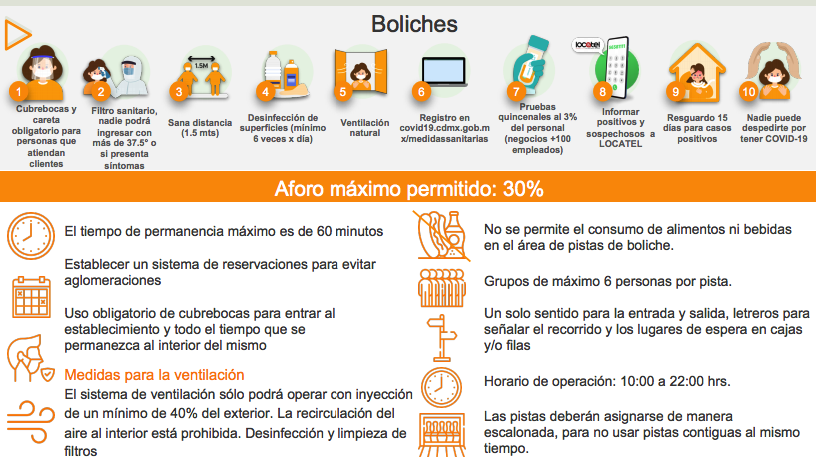 No obstante que la ciudad cumplirá 16 semanas con un riesgo alto por coronavirus, la mandataria capitalina anunció la apertura de nuevas actividades económicas: boliches, casas y casinos de apuestas, con un 30% de aforo; actividades comerciales en el Centro Histórico los domingos a partir del 18 de octubre, y, además, Madero se abrirá como una calle de doble circulación.