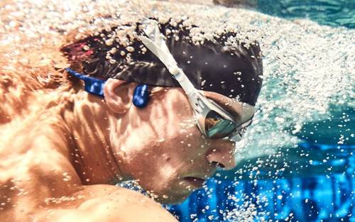 Los auriculares de conducción ósea son mucho más seguros para su audición también, los auriculares internos pueden dañar la audición, ya que el oído interno es altamente sensible a los sonidos a través de los altavoces de los auriculares internos. Esto es especialmente cierto para los nadadores, considerando que el volumen debe ser bastante alto para competir con el ruido del agua.