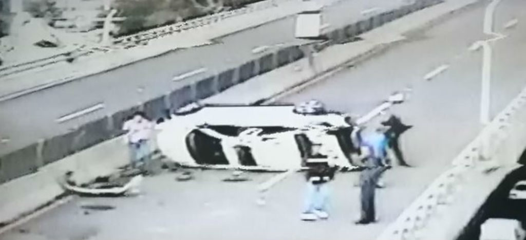 Previo al arribo de los servicios de emergencia, personas a bordo de sus autos corrieron a auxiliar hasta que lograron poner el auto en cuatro ruedas nuevamente.