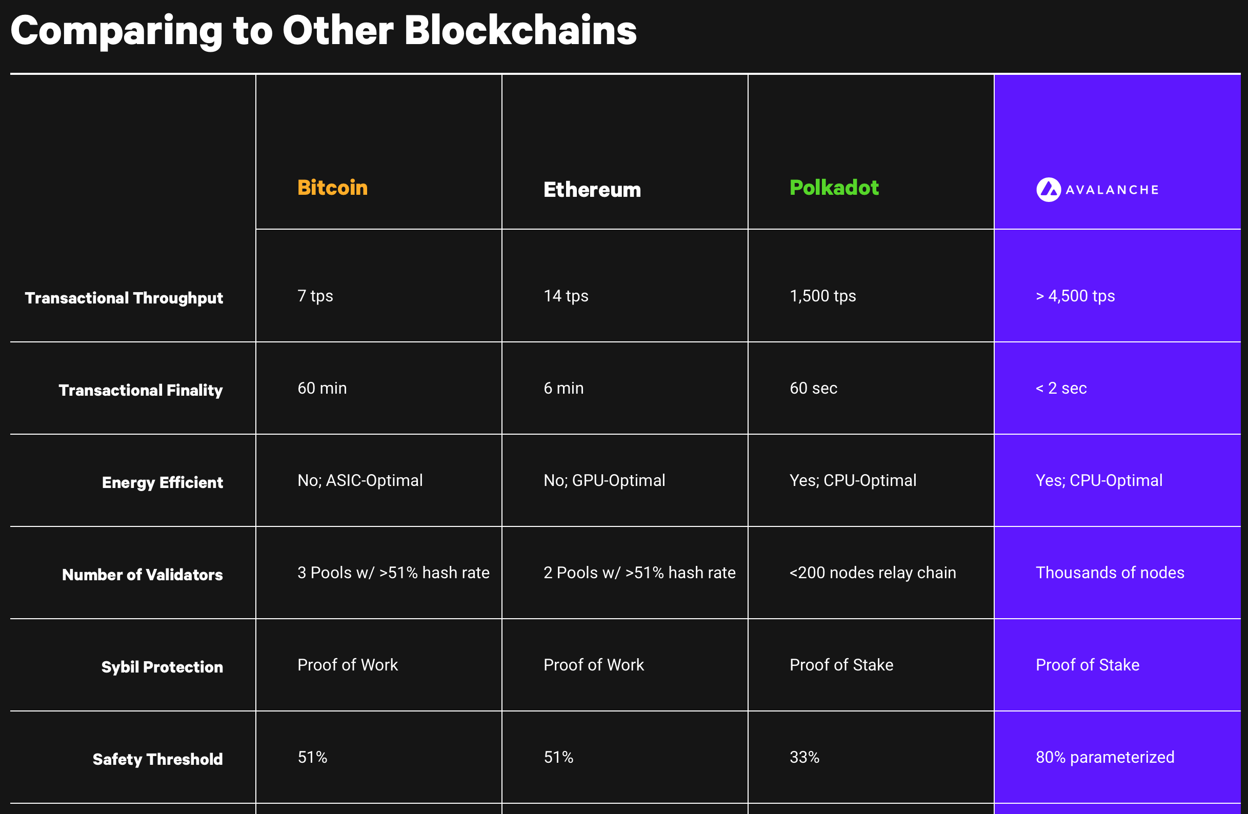 Esto es lo que dice el sitio web oficial de Avalanche sobre el rendimiento de su blockchain: