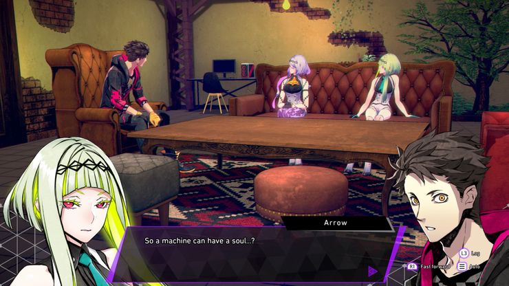 La historia es, como era de esperar, bastante ambiciosa. Eso es bastante stock para un Shin Megami Tensei spin-off, especialmente uno con tanto interés en cuestionar la innovación tecnológica y su impacto en la sociedad. Es divertido ver al elenco en el centro de la narrativa juntos, y comienzan a desarrollar sus relaciones temprano, lo que facilita invertir en sus arcos personales junto con el pesimismo más grande del mundo cyberpunk de Japón. La capacidad de pasar el rato con uno o varios miembros del equipo en el bar y conocerlos mejor es solo una forma en que Hackers del alma 2 basa su narrativa vertiginosa en un sentido más familiar de camaradería, y funciona bien para mantener las cosas estables.