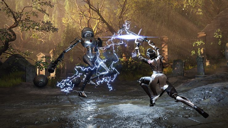 Fuera del equipo inicial, Aegis también puede encontrar diferentes armas en el supramundo, cada una con sus propios trucos únicos. La Cadena de fuego es un látigo lento con un AOE amplio y de largo alcance, y se le puede dar el encantamiento de fuego para hacer que sus ataques sean más poderosos; Falchion y Saber son espadas gemelas con un ataque giratorio increíblemente poderoso, que consumirá la mayor parte de la resistencia de Aegis cuando se use; las Nemesis Claws son armas rápidas que pueden parar y contrarrestar los ataques enemigos, y el Charleville 1789 Shield Musket es una pistola rápida que inflige el elemento frío con cada disparo. Las armas en el aumento de acero La demostración cubre una gran cantidad de estilos de juego diferentes, y en realidad solo fue el martillo demasiado lento de Body of Work el que se sintió con poca potencia. Aegis puede tener dos armas equipadas a la vez y elegir el dúo correcto de armas es vital, ya que una no será suficiente para enfrentar las amenazas en París.