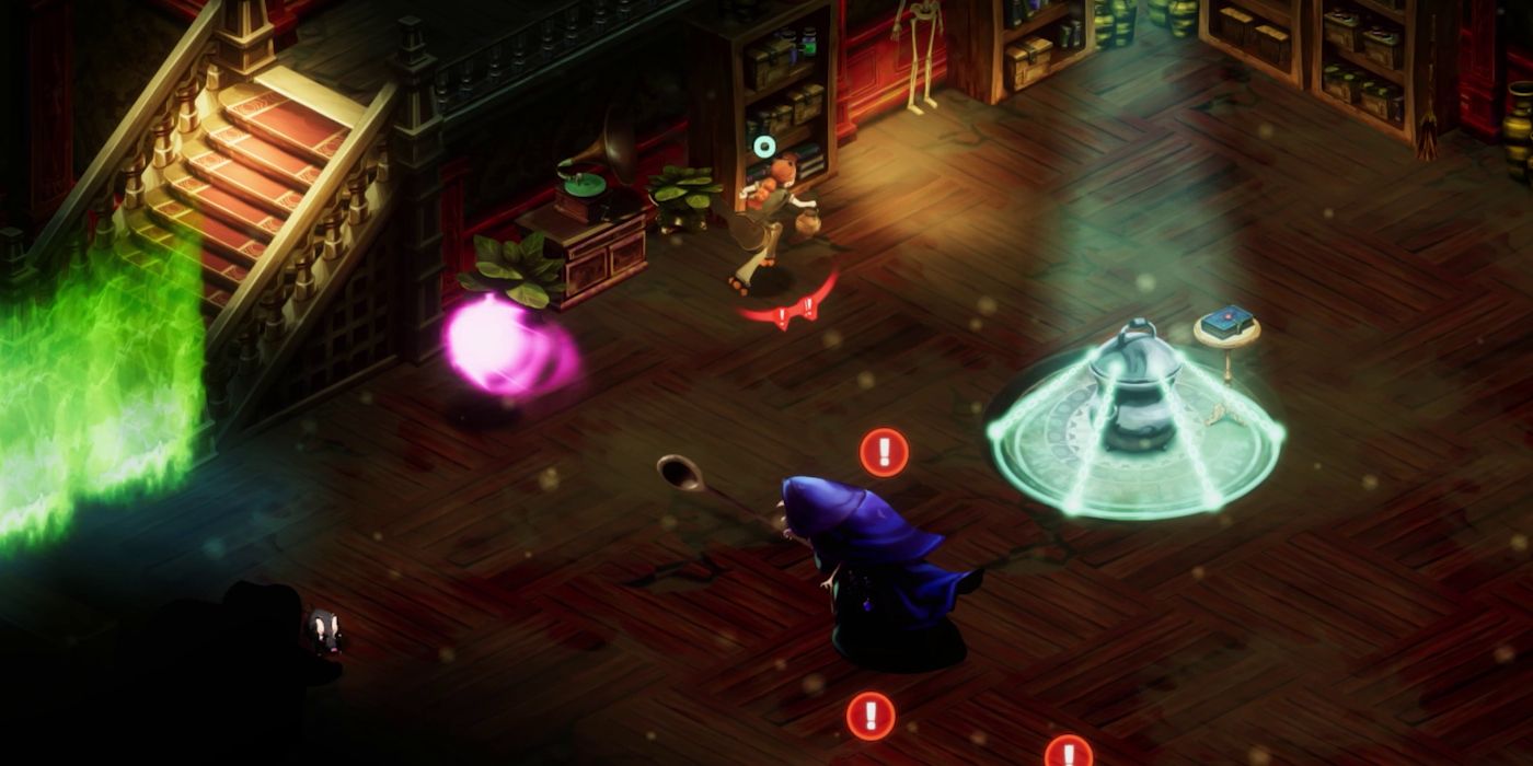 Esta rotación de villanos hace que el Casa embrujada el ambiente se siente dinámico y vivo, incluso si no se pueden enfrentar directamente en combate, agregando una energía impredecible a cada habitación cerrada. Por ejemplo, la bruja antes mencionada es la jefa del primer piso, pero el jugador puede encontrarla en cualquier habitación anterior como un evento aleatorio. Ser descubierto no es un fin inmediato, pero hace que sea complicado alejarse de otras amenazas y esconderse en estos espacios llenos de gente.