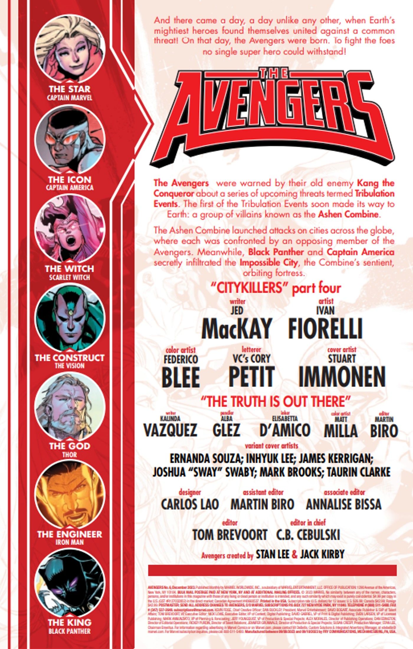 Vengadores #6 se lanzará el 11 de octubre de 2023 por Marvel Comics.