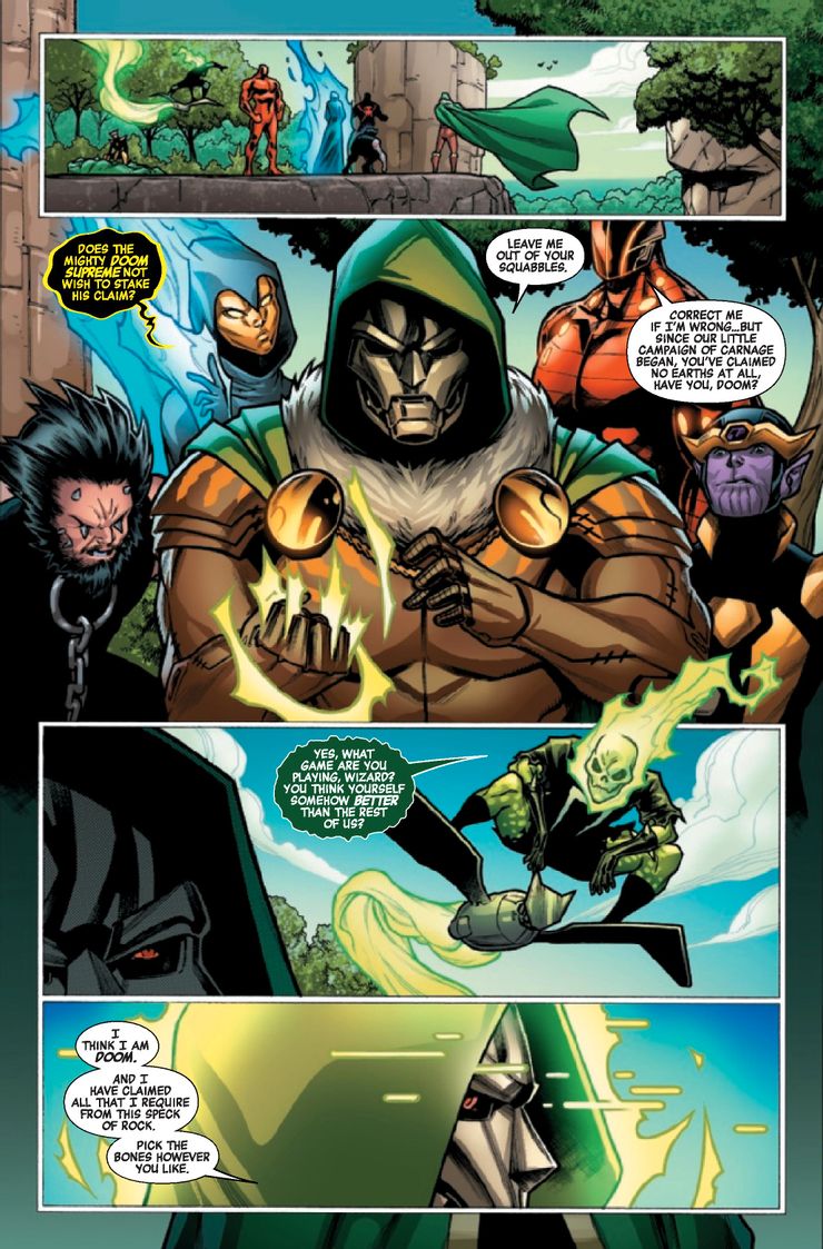 Sin embargo, la nueva vista previa de Vengadores para siempre #5 de Jason Aaron, Jim Towe y Guru-eFX revela que Doom Supreme aún tiene que reclamar una Tierra como propia. Con una armadura mística hecha con la piel de su amor muerto hace mucho tiempo, Doom Supreme es supuestamente la versión más poderosa del Doctor Doom que jamás haya existido. Sin embargo, se está burlando de que él es incluso más grande que sus compañeros Masters of Evil. Habiendo matado a un nuevo grupo de Vengadores, los villanos inmediatamente comienzan a discutir sobre quién reclamará el mundo… excepto Doom. Al darse cuenta de esto, los otros villanos se preguntan por qué, acusando a Doom de pensar que es mejor que ellos. Aquí están las páginas de vista previa y la sinopsis del próximo número: