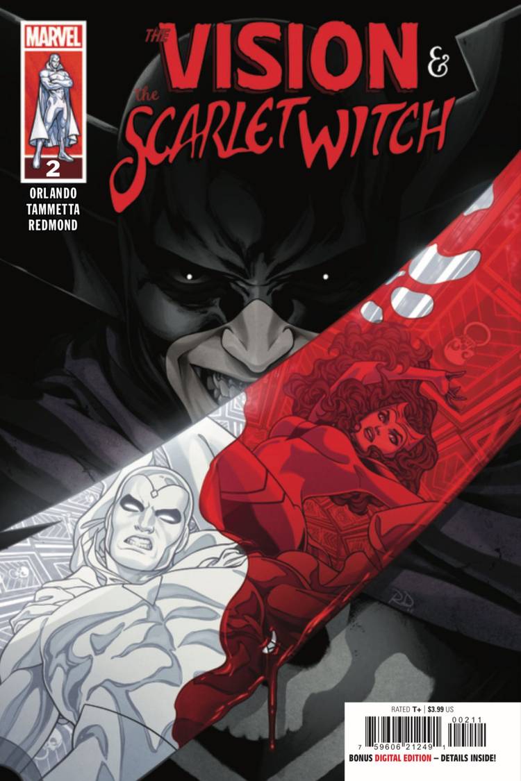 La visión y la bruja escarlata #2; Escrito por Steve Orlando; Arte de Lorenzo Tammetta; Color de Ruth Redmond; Letras de Travis Lanham de VC