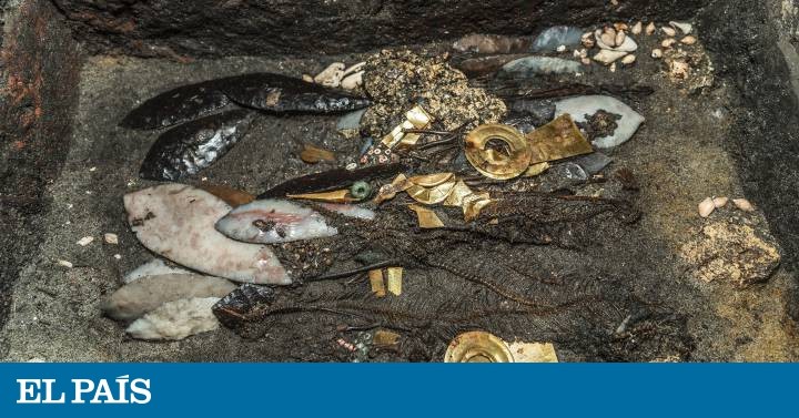 Alejandra Aguirre, que ha estado a cargo de la excavación, explica que para llegar de la primera capa de sedimentos a la última, donde encontraron finalmente a los halcones, han tenido que vestirse —otra vez— de expertos cirujanos: pulso firme, rastrillo y pinceles. Primero apareció una capa de grandes barras de copal, luego varias de corales, conchas y demás organismos marinos, luego otra de caracolas Strombus, grandes como papayas, y por fin, al fondo, las dos aves de presa vestidas de oro, junto a los espinazos de varias serpientes y el esqueleto de un pequeño tiburón.
