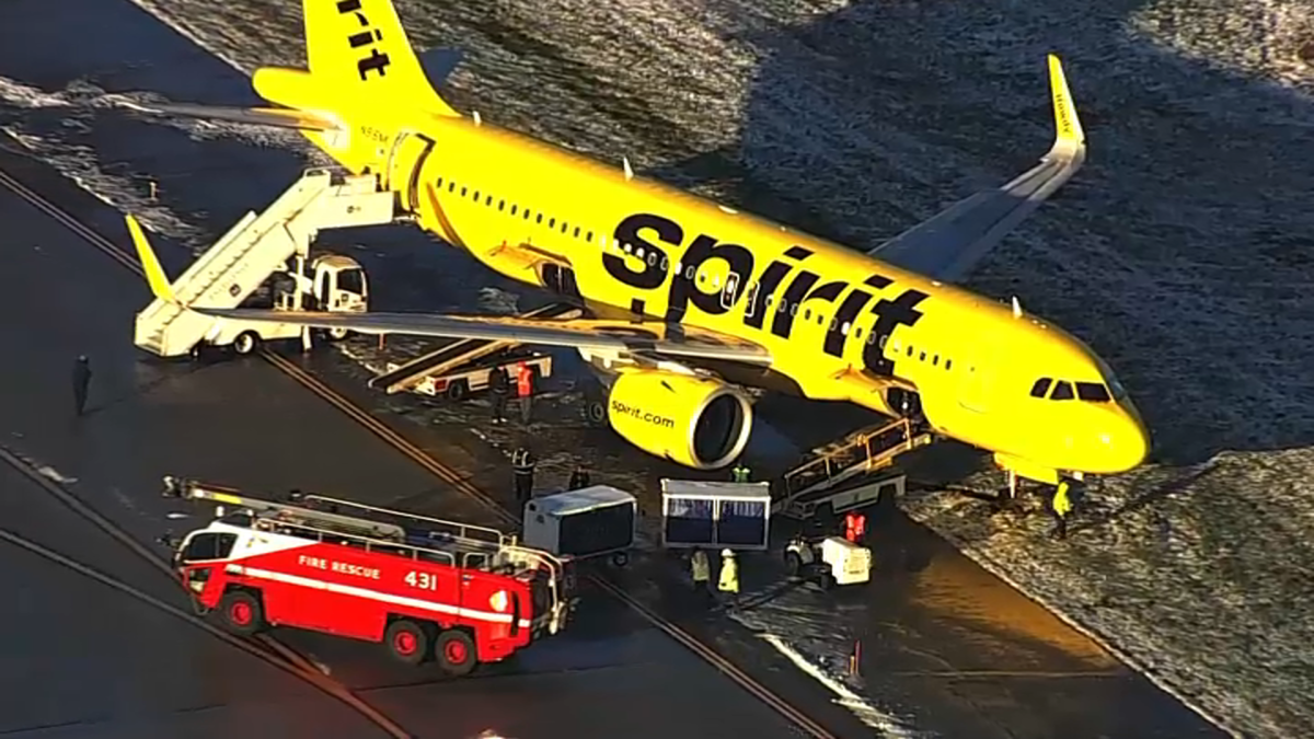 La nave de Spirit Airlines Airbus de la serie 300 estaba llegando de Las Vegas cuando se salió de la pista en BWI a eso de las 6:20 a.m., informaron las autoridades. Unas 111 personas estaban abordo y nadie salió herido.