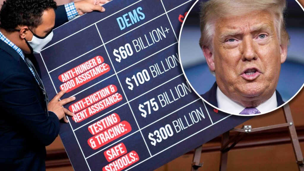 “Si no llegamos a un acuerdo, eso significa que no conseguirán el dinero”, indicó Trump a la presentadora Maria Bartiromo. “Eso significa que ellos no pueden realizar una votación universal por correo; simplemente no pueden tenerla”.