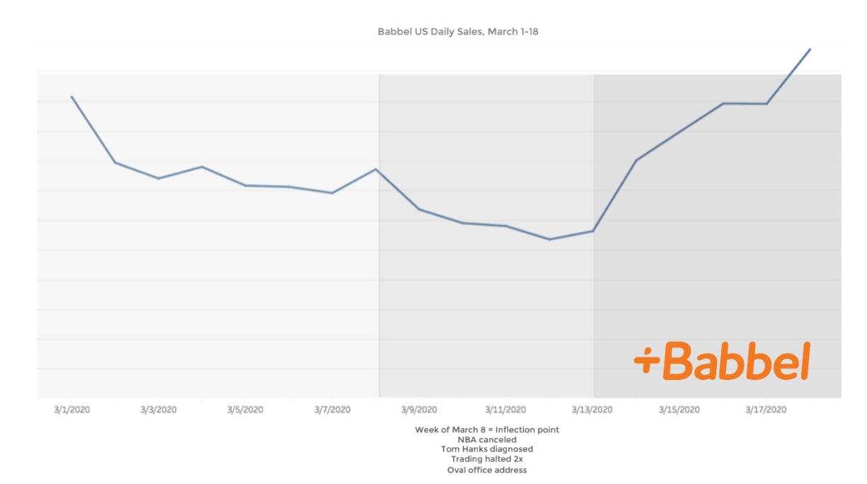 La compañía también me dice que está viendo una mayor demanda de las escuelas que buscan formas de mantener a sus estudiantes practicando sus habilidades lingüísticas mientras están fuera del aula. Sin embargo, incluso sin tener en cuenta a estos estudiantes, el número total de suscriptores de Babbel en realidad está en este momento, lo que es una sorpresa, ya que la mayoría de las personas probablemente no estén pensando en aprender los conceptos básicos de un idioma para sus próximas vacaciones.