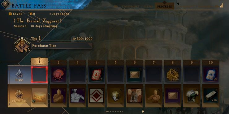 Hay un pase de batalla gratuito y premium para cada temporada en Babylon’s Fall, y las recompensas varían según el nivel que puedan alcanzar los jugadores.