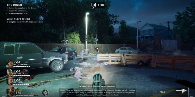 Una vez que se han entregado las cajas, la parte final de la misión es una situación clásica de última batalla, que requiere que los limpiadores defiendan al comensal en una batalla épica contra las implacables oleadas de muertos vivientes.