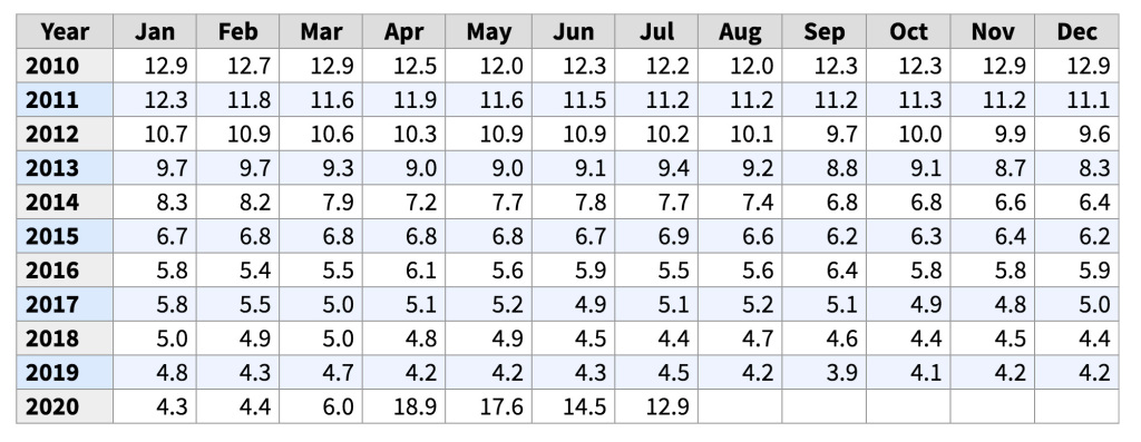 Se esperaba que la tasa de desempleo hubiera disminuido del 11.1% al 10.5%, que aún superaría la tasa más alta durante la Gran Recesión 2008-2009.
