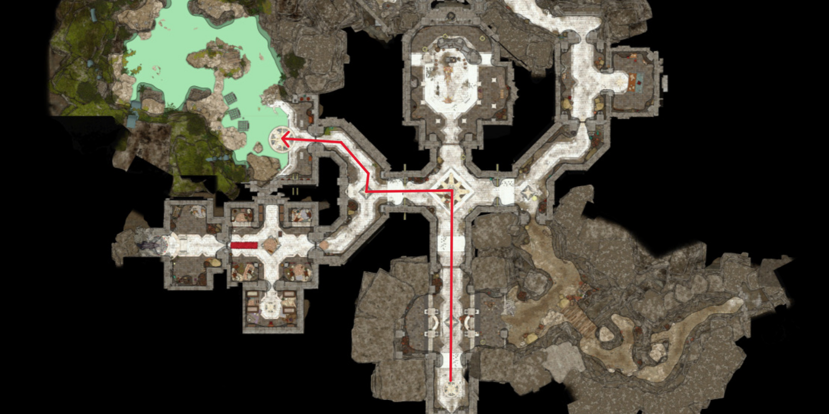 En el monasterio, hay algunas interacciones que debes completar antes de tener vía libre para caminar, así que hazlas como mejor te parezca. No tienen ninguna influencia en el resultado de la situación con los huevos, así que procede como desees. Una vez que puedas, toma el pasillo a la izquierda de la entrada y luego tu siguiente a la derecha para llegar al Criadero.