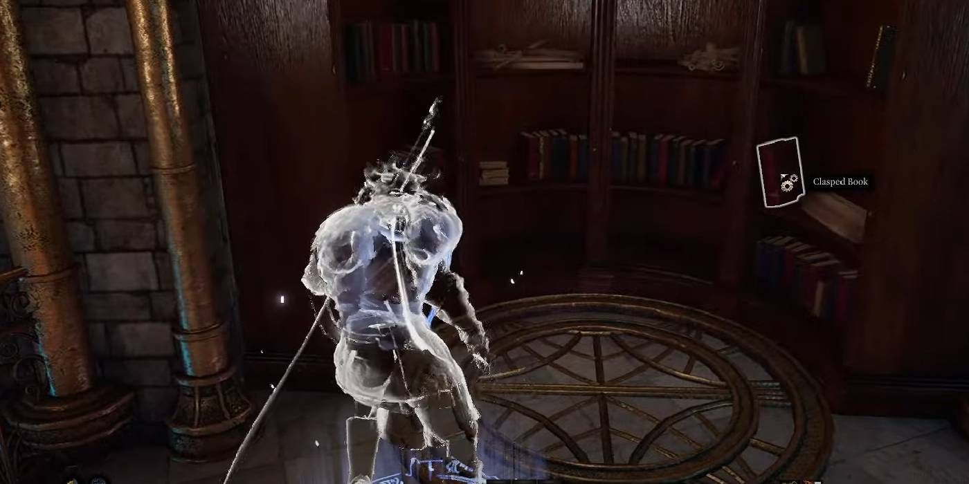 Para viajar a otra área en la Bóveda Hechicera, pasa por el Mano de plata, Abjuracióny Plata puertas (en ese orden particular) para activar otra palanca que abre una puerta justo enfrente del Elminster al principio. Esta área contiene Los anales de Karsusun libro mágico que se vende a un precio elevado.