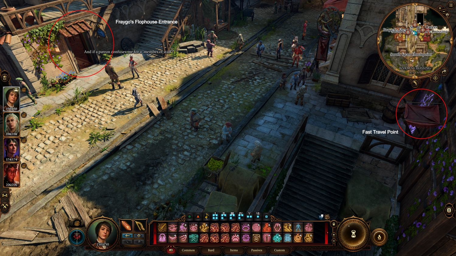 Asegúrate de incluir a Astarion en tu grupo cuando visites Fraygo’s Flophouse. Si está presente, el grupo puede interactuar con algún engendro de vampiros para obtener contexto adicional para la búsqueda del compañero de Astarion para derrotar al señor vampiro Cazador.