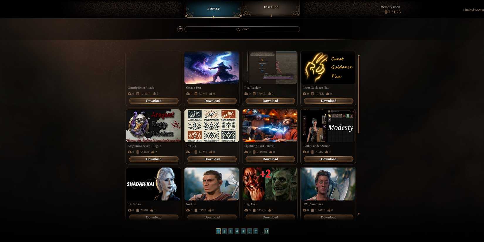 Si BG3MM o Vortex te intimidaron demasiado, te alegrará saber que el administrador de mods del juego es realmente simple. Todo lo que necesitas hacer es explorar los mods disponibles, filtrarlos según lo que quieras hacer y luego descargar cualquiera que te guste.